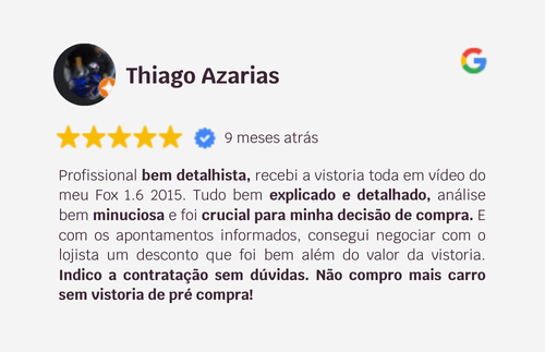 Com formação pela Toledos Cars e mais de 100 avaliações no currículo, traz um olhar criterioso que garante confiança em cada análise.